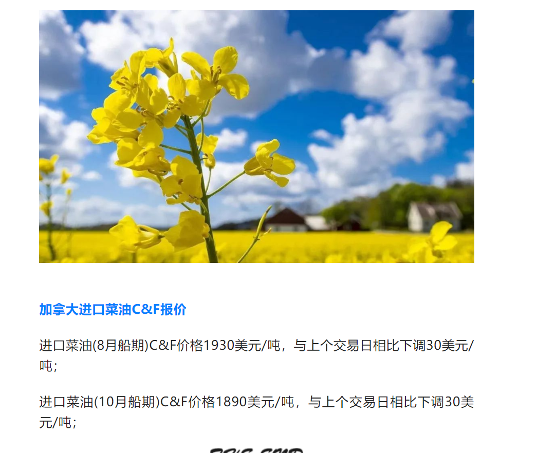 7月13日進(jìn)口加拿大菜籽油報(bào)價(jià)