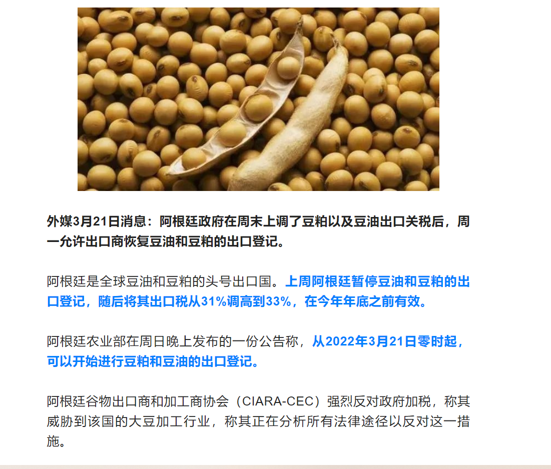 阿根廷提高關(guān)稅后重新開放豆油和豆粕出口