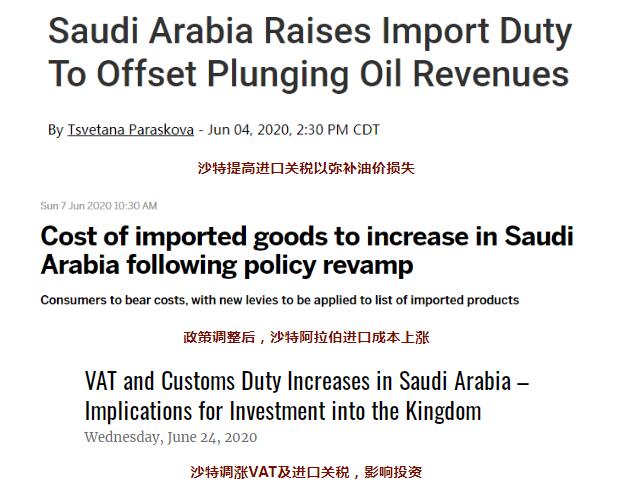 據(jù)中國駐沙特大使館經(jīng)商處官網(wǎng)消息,沙特多次進口關(guān)稅的調(diào)整,因油價下跌和新冠疫情影響而受到巨大沖擊。沙特當(dāng)?shù)亟?jīng)貿(mào)人員認為政府提高進口關(guān)稅稅率背后的原因是多方面的,其中就包括保護國內(nèi)產(chǎn)業(yè)和增加國家財政收入等。