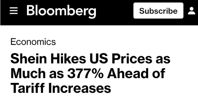 據(jù)悉,Shein將美國市場部分商品價(jià)格最高上調(diào)至377%。