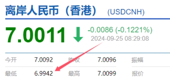 25日,離岸人民幣兌美元收復(fù)7.0關(guān)口,最高觸及6.9993,為去年5月以來(lái)首次。