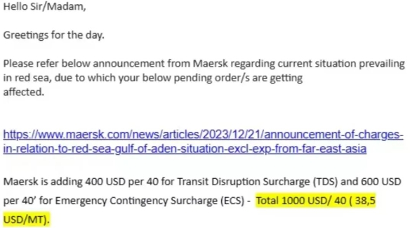 目前已經(jīng)有外貿(mào)人與歐洲客戶就這筆錢誰出的問題產(chǎn)生了分歧,也有歐洲客戶要求供應(yīng)商立刻暫停出貨,直到紅海局勢穩(wěn)定!