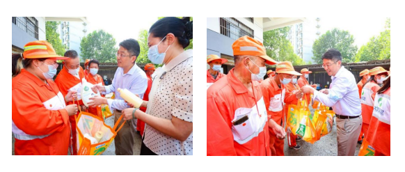 為進(jìn)一步增強(qiáng)人們珍愛(ài)環(huán)境,關(guān)心關(guān)愛(ài)城市一線美容師的意識(shí)。2022年7月22日上午,建鄴區(qū)政協(xié)副主席、民建建鄴區(qū)基層委主委劉嬿,建鄴區(qū)政協(xié)沙洲街道工委主任楊衛(wèi)華,區(qū)政協(xié)委員、民建建鄴一支部主委、南京邦農(nóng)國(guó)際貿(mào)易有限公司董事總經(jīng)理陳長(zhǎng)偉、副主委戴書(shū)琳等一行對(duì)烈日下奮戰(zhàn)在一線的市容環(huán)衛(wèi)工人和河道養(yǎng)護(hù)員展開(kāi)慰問(wèn),向高溫下的勞動(dòng)者送去一份清涼和敬意。