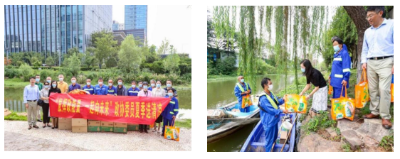 緊接著,民建會(huì)員一行又來(lái)到沙洲西河邊,為90多名辛苦勞作的河道養(yǎng)護(hù)員送來(lái)清涼。只見(jiàn)河道保潔員們正在打撈著河面的漂浮物,哪怕身處盛夏,整個(gè)城市像燒透了的磚窯使人喘不過(guò)氣來(lái),他們還是辛勤工作著,皮膚也總被曬得黝黑。民建建鄴一支部主委、區(qū)政協(xié)委員、南京邦農(nóng)國(guó)際貿(mào)易有限公司董事總經(jīng)理陳長(zhǎng)偉說(shuō)道,“烈日下我們的市容環(huán)衛(wèi)工人、河道保潔員奮戰(zhàn)在一線,不辭辛勞,他們都是文明典范城市創(chuàng)建中的最美踐行者。作為轄區(qū)企業(yè),我們?yōu)樗麄兗佑?、給他們助力也是理所當(dāng)然的?!?領(lǐng)導(dǎo)班子在關(guān)心關(guān)愛(ài),感嘆辛苦河道保潔員不易的同時(shí),也呼吁廣大群眾要自覺(jué)做到珍愛(ài)環(huán)境,共同維護(hù)整潔有序的身邊環(huán)境。