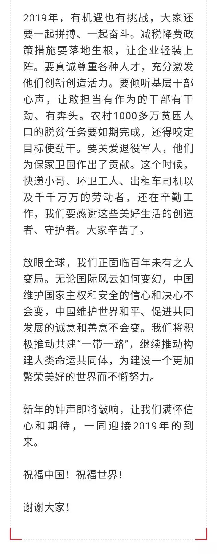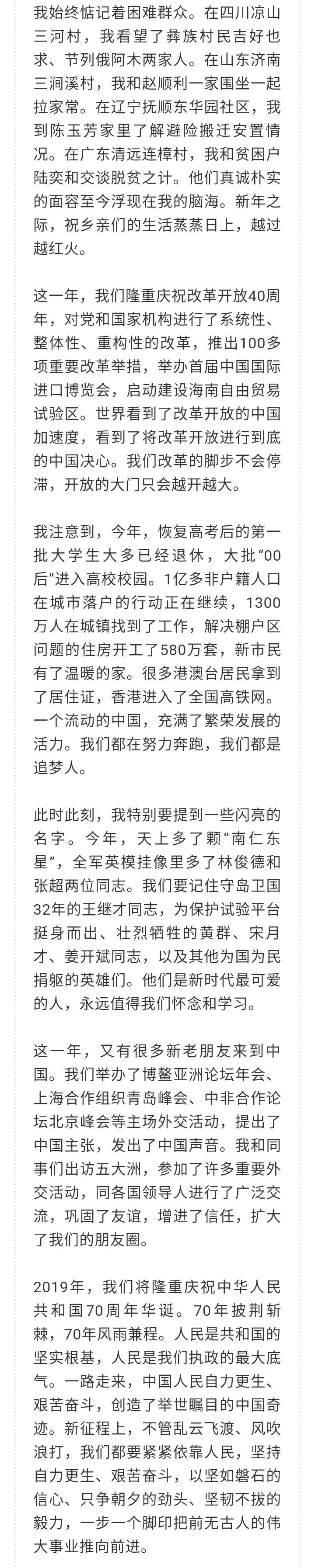 習(xí)近平發(fā)表二〇一九年新年賀詞:我們都在努力奔跑,我們都是追夢人