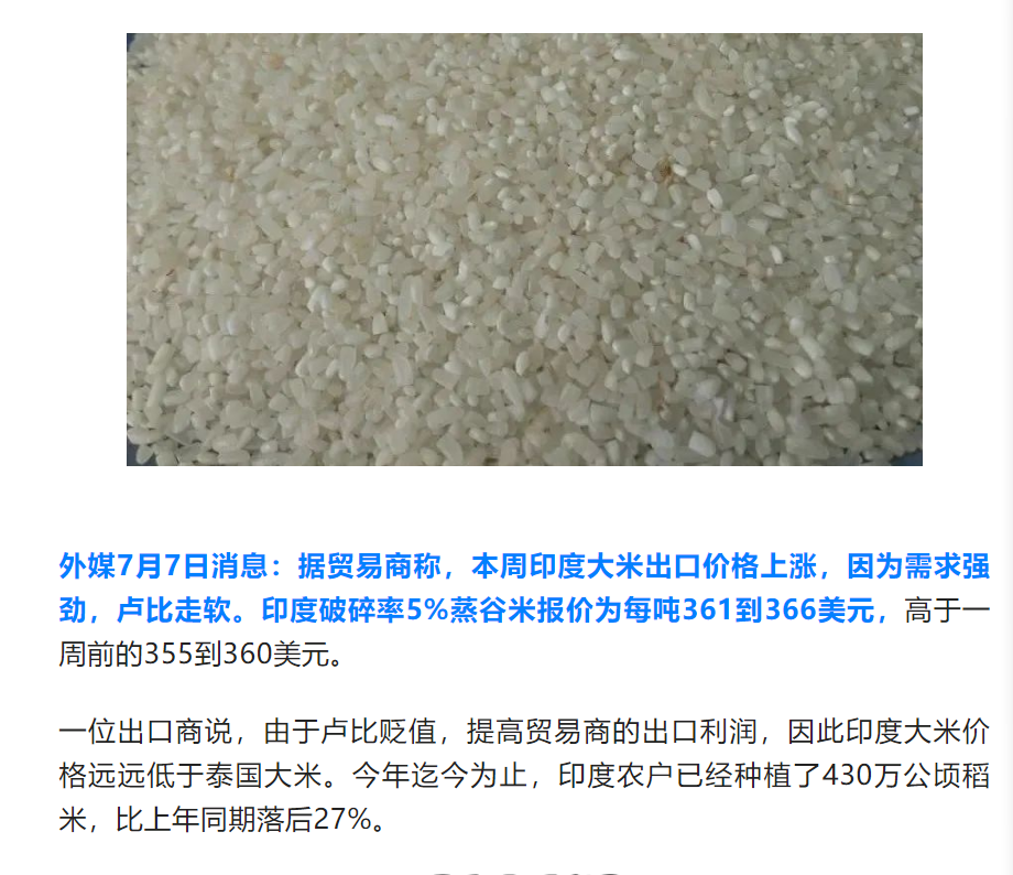 印度大米出口價格上漲