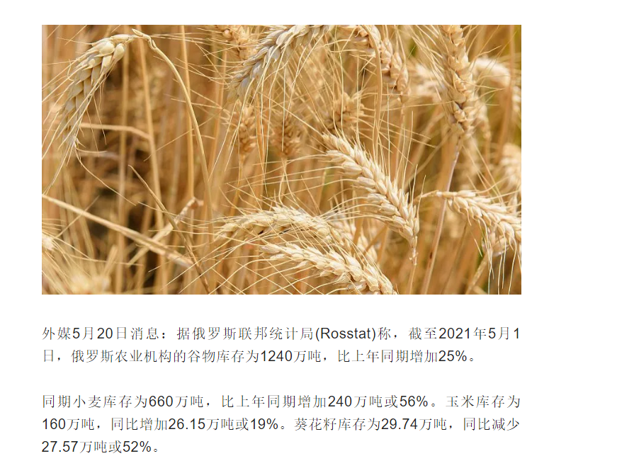 俄羅斯谷物庫存超過1200萬噸