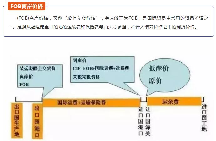 那我們知道有離岸價(jià),那肯定就一定會(huì)有到岸價(jià),長期以來,人們習(xí)慣于把國際貿(mào)易中的FOB價(jià)格條件稱為離岸價(jià)格,從而也把價(jià)格術(shù)語中包含運(yùn)費(fèi)與保險(xiǎn)費(fèi)的CIF說成到岸價(jià)。