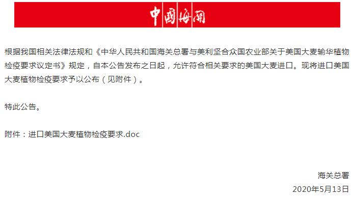 (三)《中華人民共和國(guó)海關(guān)總署與美利堅(jiān)合眾國(guó)農(nóng)業(yè)部關(guān)于美國(guó)大麥輸華植物檢疫要求議定書(shū)》。