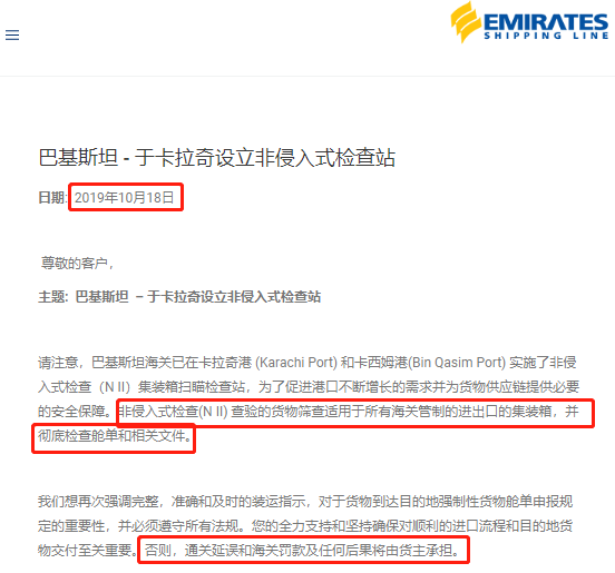 請注意,巴基斯坦海關(guān)已在卡拉奇港 (Karachi Port) 和卡西姆港(Bin Qasim Port) 實(shí)施了非侵入式檢查(N II)集裝箱掃瞄檢查站,為了促進(jìn)港口不斷增長的需求并為貨物供應(yīng)鏈提供必要的安全保障。非侵入式檢查(N II) 查驗(yàn)的貨物篩查適用于所有海關(guān)管制的進(jìn)出口的集裝箱,并徹底檢查艙單和相關(guān)文件。
