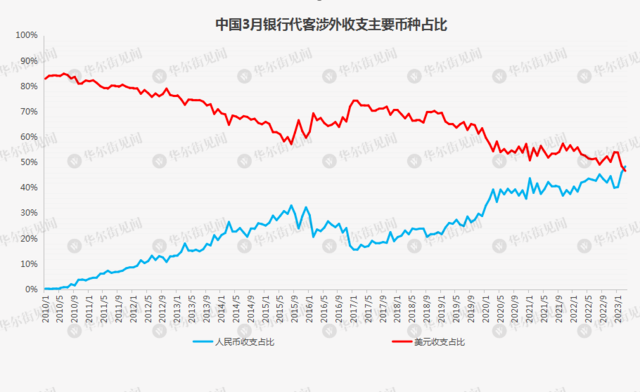 數(shù)據(jù)顯示,美元在同一時(shí)期的占比從83%下降至47%。該比例是基于所有交易計(jì)算而來,包括通過中國內(nèi)地與香港資本市場(chǎng)開展的證券交易等。