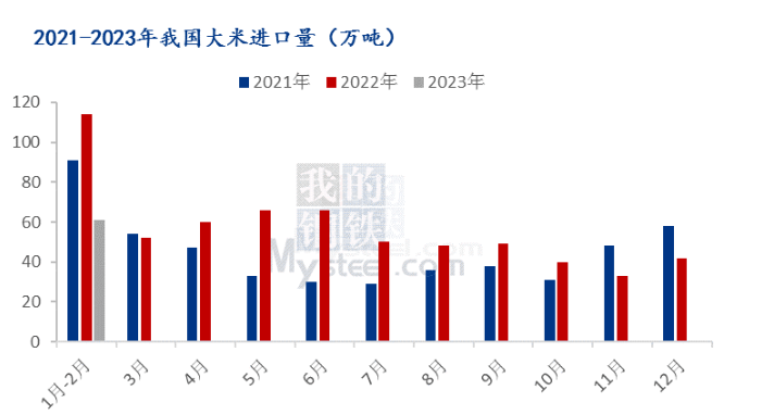 具體來看,2月份我國進口稻谷及大米36萬噸,同比減少35.4%,1月至2月我國累計進口稻谷及大米61萬噸,與上年同期相比減少46.1%。