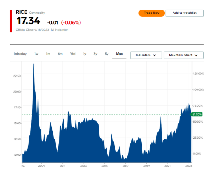 除了供應(yīng)緊張的挑戰(zhàn)外,自2022年2月俄烏沖突爆發(fā)以來其他主要谷物價格飆升,大米也成為越來越有吸引力的替代品,進而推升了需求。