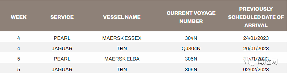 至美西(USWC)服務(wù)以下航次將取消:
