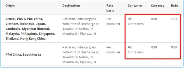 馬士基宣布從2024年6月1日起征收遠(yuǎn)東亞至巴基斯坦、印度(卸貨港為印度尼赫魯港、印度尼德拉港、印度尼西姆港)所有類型集裝箱的旺季附加費(fèi) (PSS)。華南、華東700美元,華北950美元。