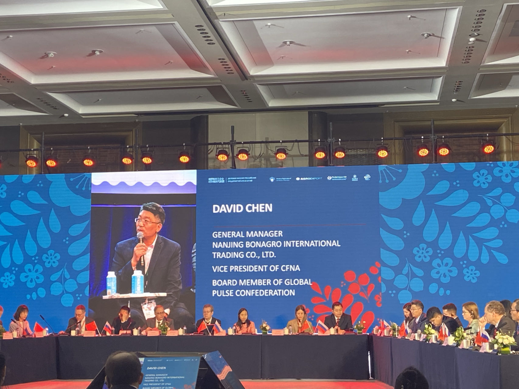 副會(huì)長(zhǎng)單位南京邦農(nóng)國(guó)際貿(mào)易有限公司董事長(zhǎng)陳長(zhǎng)偉出席了中俄農(nóng)業(yè)經(jīng)貿(mào)合作洽談會(huì),并就中國(guó)對(duì)谷物和豆類的需求情況進(jìn)行了發(fā)言。