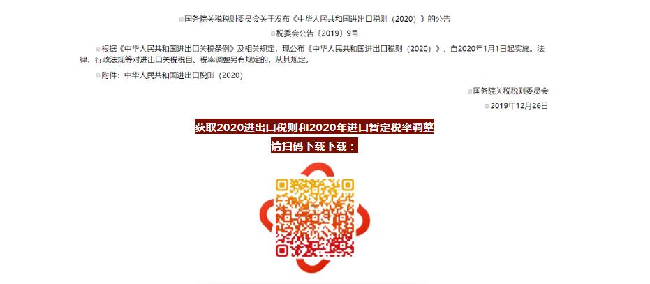 《中華人民共和國進出口稅則(2020)》,自2020年1月1日起實施。法律、行政法規(guī)等對進出口關(guān)稅稅目、稅率調(diào)整另有規(guī)定的,從其規(guī)定。包括根據(jù)國家關(guān)稅政策以及有關(guān)國際協(xié)定確定的進出口關(guān)稅稅目、稅率及歸類規(guī)則,是海關(guān)計征關(guān)稅的依據(jù)。2020版《稅則》進出口稅目,與2019版《稅則》相同,未做調(diào)整;2020版《稅則》最惠國稅率、進口暫定稅率、協(xié)定稅率和特惠稅率,在2019版《稅則》基礎(chǔ)上,根據(jù)《國務(wù)院關(guān)稅稅則委員會關(guān)于進口暫定稅率等調(diào)整方案的通知》(稅委會〔2019〕50號)進行了調(diào)整。除2020版《稅則》中已公布的稅目稅率外,法律、行政法規(guī)等對進出口關(guān)稅稅目、稅率調(diào)整另有規(guī)定的,仍依照法律、行政法規(guī)等實行。
