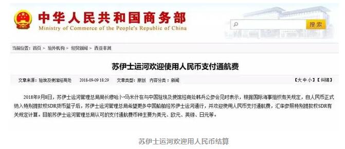 還有的是埃及蘇伊士運(yùn)河,2018年9月8日起,中國(guó)船只通過(guò)運(yùn)河也可以直接以人民幣進(jìn)行付“過(guò)路費(fèi)”。但人民幣要真正變成國(guó)際上“完全自由流通的貨幣”,仍然有很長(zhǎng)的路要走。