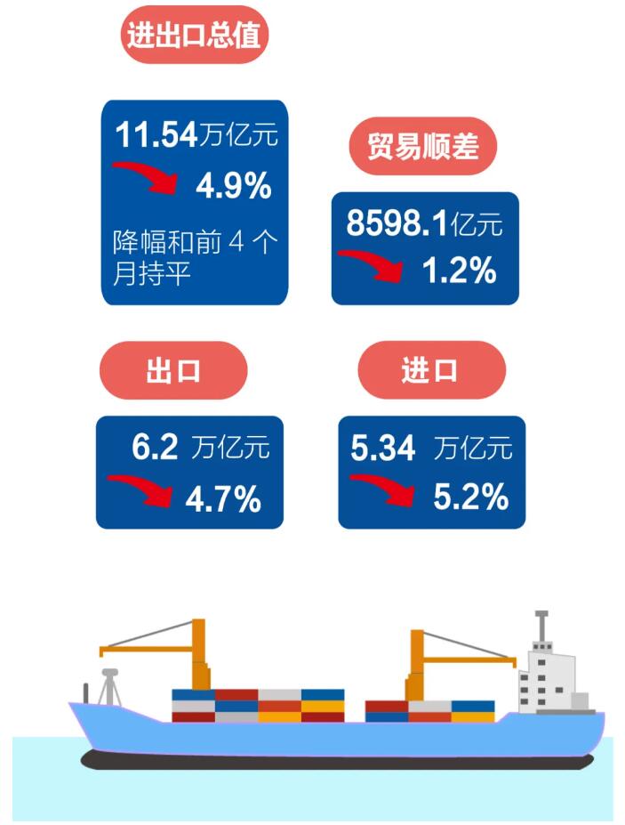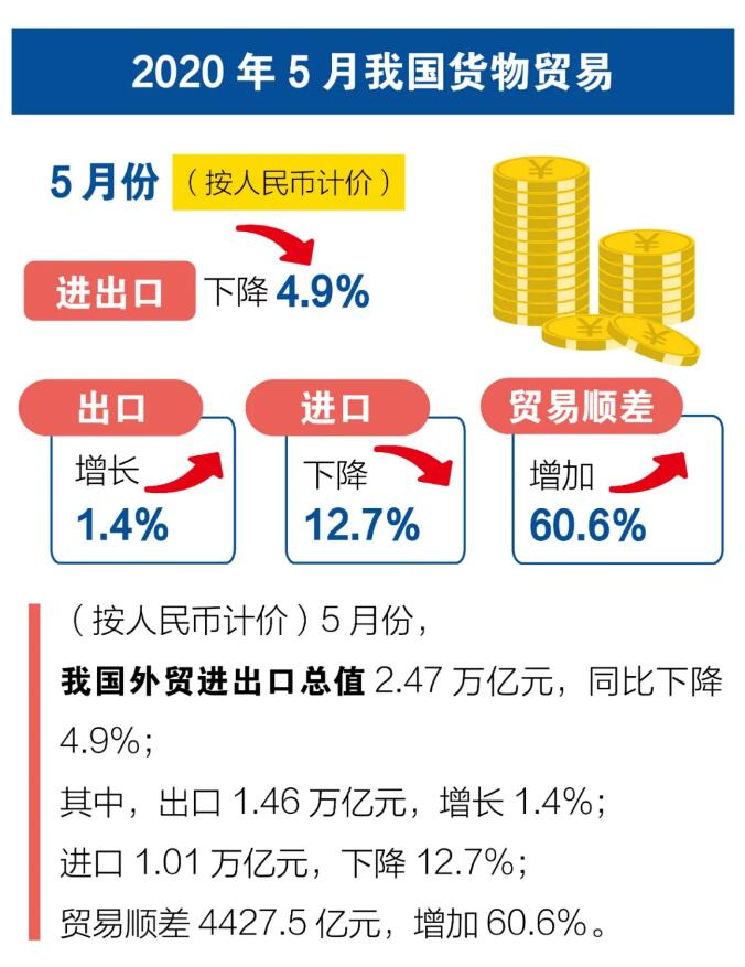 前5個(gè)月我國(guó)外貿(mào)進(jìn)出口情況;5月份出口增長(zhǎng)1.4%