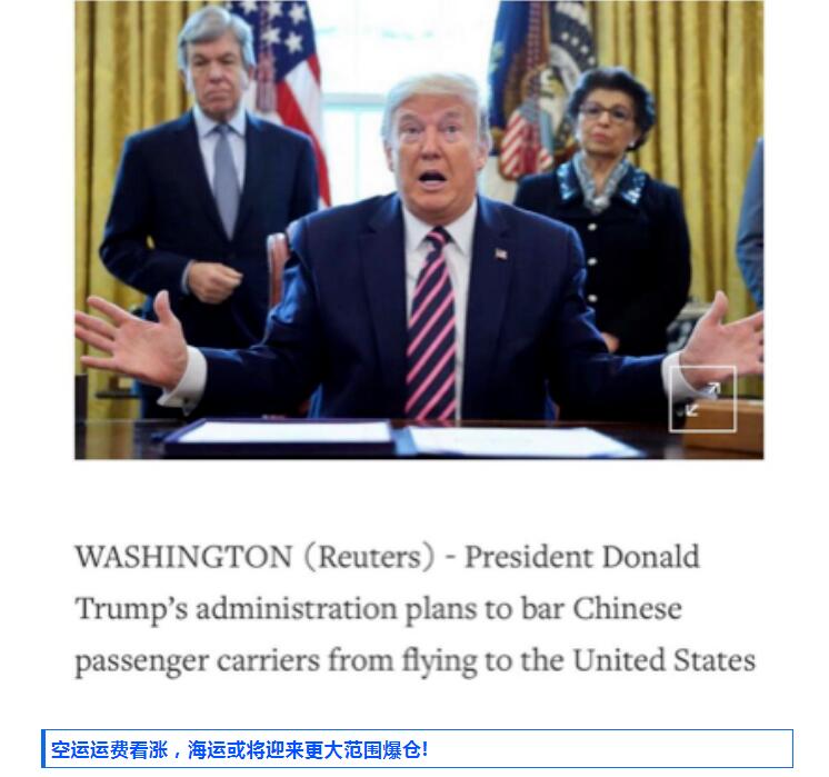 這次美國突然宣布禁止中國航班飛往美國,讓原本有希望復(fù)蘇的空運市場再次跌入深淵,業(yè)內(nèi)人士分析認為,這勢必又將加大空運市場的運力壓力,更多的客改貨飛機將往返中美航線。同時也放大了海運的業(yè)務(wù)需求。