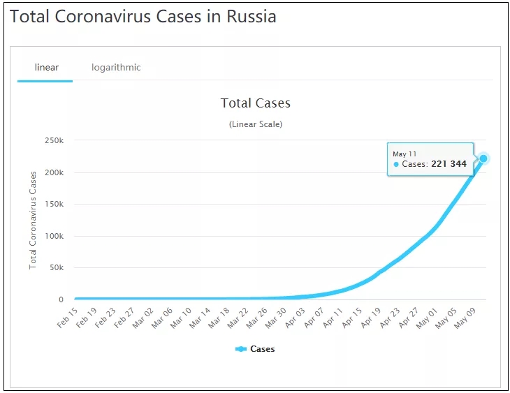 俄羅斯衛(wèi)星通訊社5月11日報道稱,俄羅斯新冠病毒疫情防控指揮部當天表示,在過去24小時內,俄羅斯新增11656例新冠肺炎確診病例,累計確診221344例。