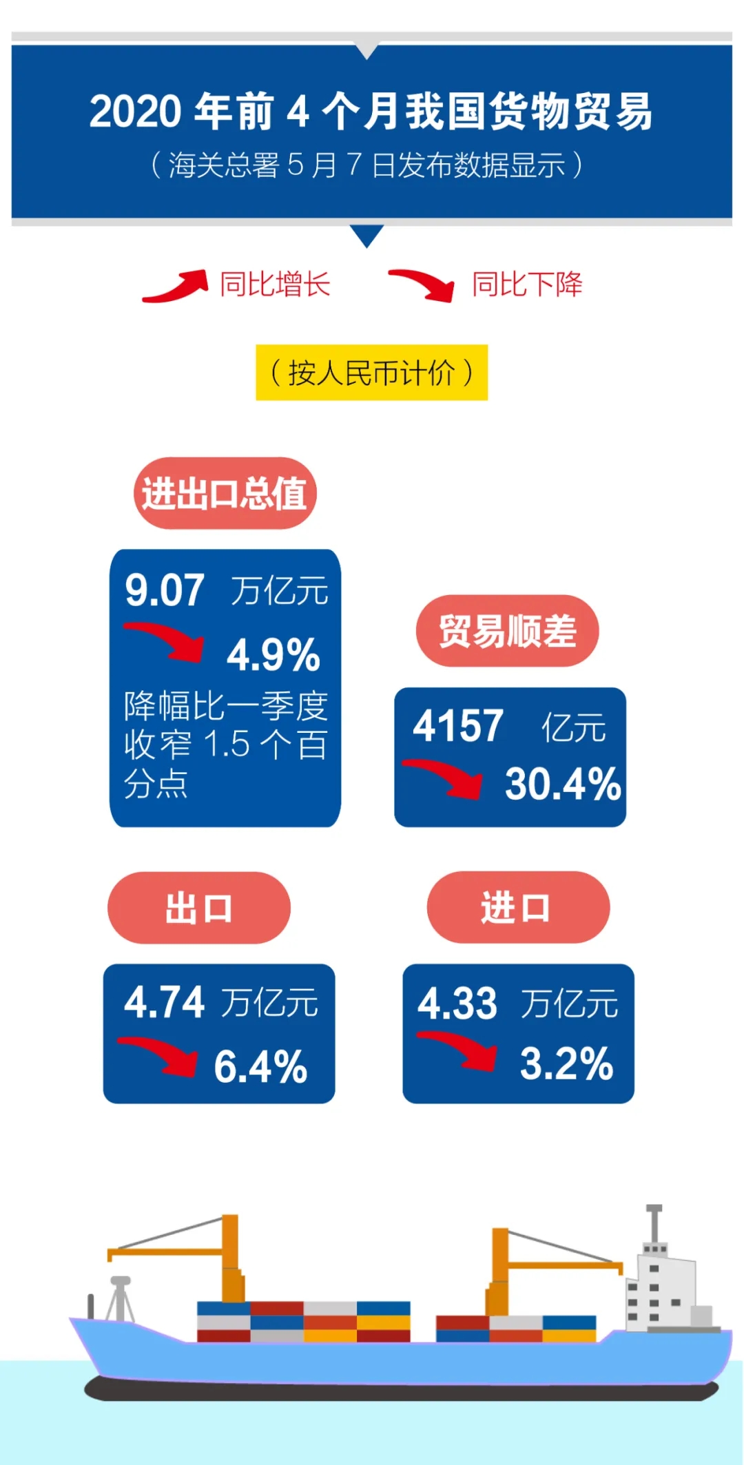 前4個(gè)月我國(guó)外貿(mào)進(jìn)出口情況;其中對(duì)美出口下降15.9%