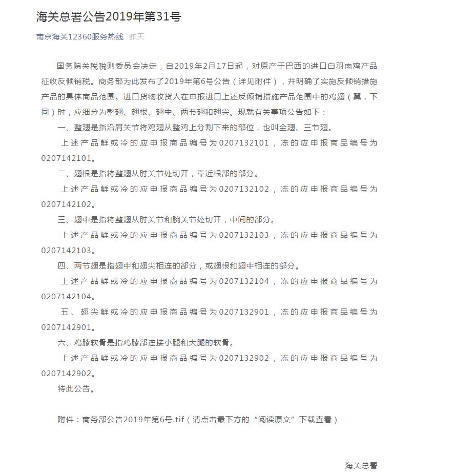 海關總署公告2019年第31號